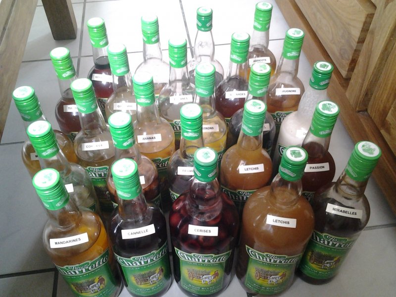 Je commence ma collection de rhum arrangé, j'en prend un réel plaisir à les faire et pou tout les gout, papaye, letchis, jambose, goyavier ect ... Et surtout il me faut toujours une bouteilles de rhum charrette sous la main pour mes plats et dessert. Jamais sans lui lol