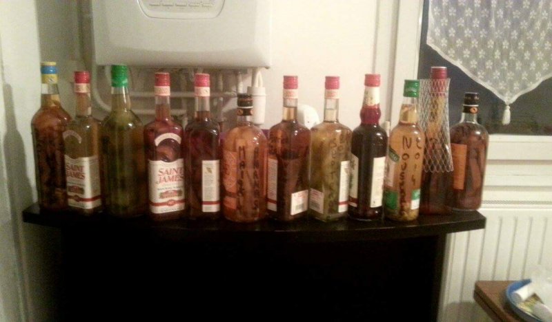 Voici un petit aperçu des mes petit rhum arrangé alors le rhum et bel et bien du charette lez bouteille beaucoup de récup à droite à gauche bientôt deux ans de fermentation un délice !!!!