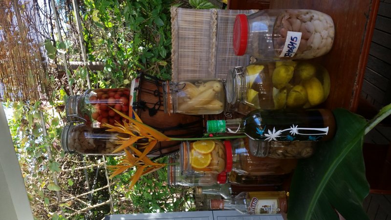 Raisons pour lesquelles vous devriez choisir ma photo,tout simplement parce que tout nos rhum arrangé sont préparé a base de produis de notre jardin, sur cette photo il y a Rhum arrangé curcuma, gingembre mangue,Jacques,pépins de raisins Isabelle, Géranium
